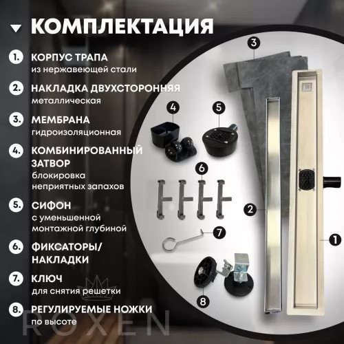 Лоток предназначен для установки вровень с полом. Регулируемые ножки позволяют нивелировать неровность пола и добиться идеальной плоскости при установке. Одна из важных особенностей данной модели - низкая монтажная глубина, что дает возможность установить лоток в любом месте.
