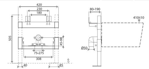 - Размеры: 420/505/80-190 мм