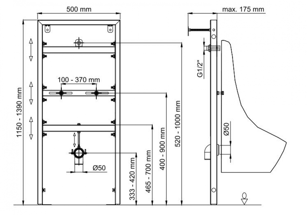 Инсталляция для писсуара Berges Novum 049215 - Ширина: 50 см, Высота: 112.3 см, Глубина: 10 смНазначение: Для писсуара, Клавиша в комплекте: Нет