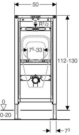 - Высота элемента регулируется от 112 см до 130 см, в зависимости от санфаянса писсуара
