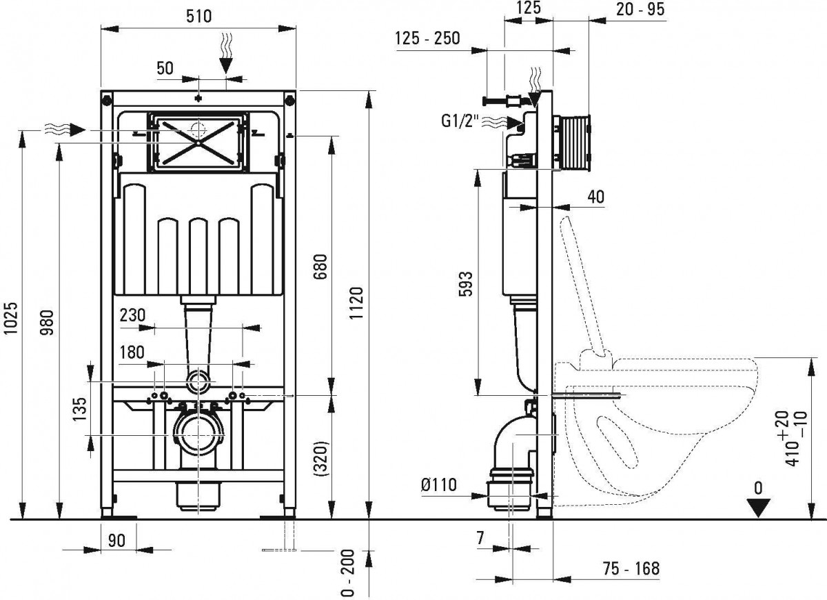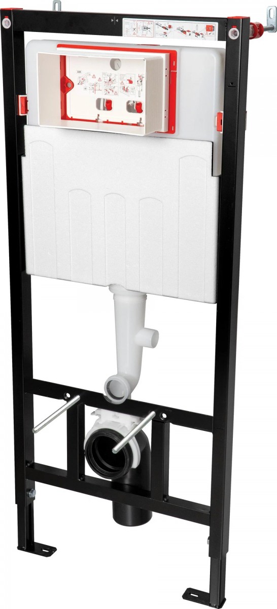 Защита от шума. Благодаря двухкомпонентному материалу изолируется передача вибраций между баком и рамой. Удобный монтаж. Наклон бака вперед облегчает установку подвижных элементов в гипсокартонных конструкциях.