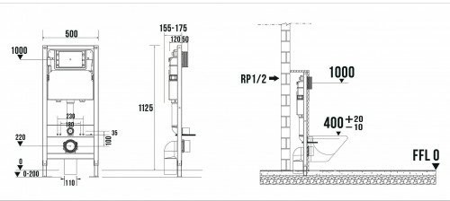 - Полная комплектация (рама с бачком и арматурой, шумоизоляция, комплект крепежа, клавиша смыва).
