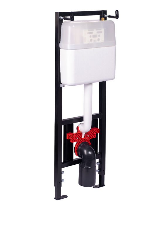 Инсталляция для подвесных унитазов АНИ Пласт WC1010. Cистема скрытой установки унитаза шириной 40 см, высота от 110 см, глубина от 16 см, усиленная стальная рама выдерживает до 400 кг, двухрежимный смыв, механическое управление