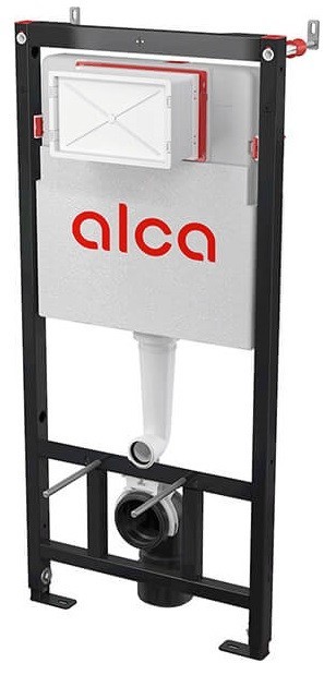 Инсталляция AlcaPlast AM101/1120: металлическая рама обработана черной порошковой краской, конструкция рамы предполагает крепление к достаточно жесткому гипсокартоному профилю или перед несущей стеной, полистирольная изоляция бачка снижает шум и препятствует образованию конденсата.