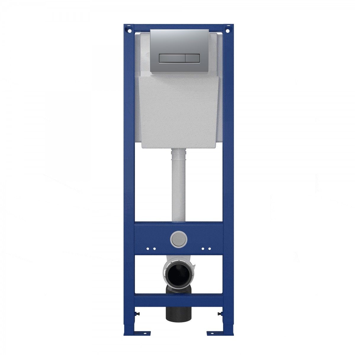 Инсталляция для унитаза Berges Atom Line 410 с кнопкой матовый хром - узкая система скрытого монтажа шириной 41 см, высота от 111.5 см, глубина от 16 см, усиленная стальная рама с антикоррозийным покрытием выдерживает до 400 кг, двухрежимный смыв, механическое управление