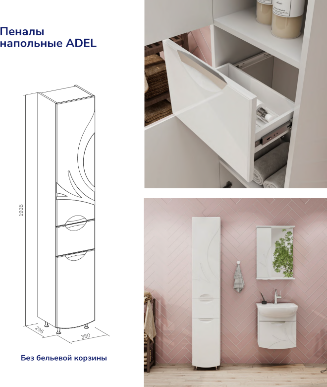Пенал напольный Volna Adel 35 белый, ширина: 35 см, глубина: 29.6 см, высота: 193.5 см, монтаж: Напольный