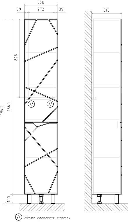 - Размеры (ШхГхВ): 35х31,6х194 см