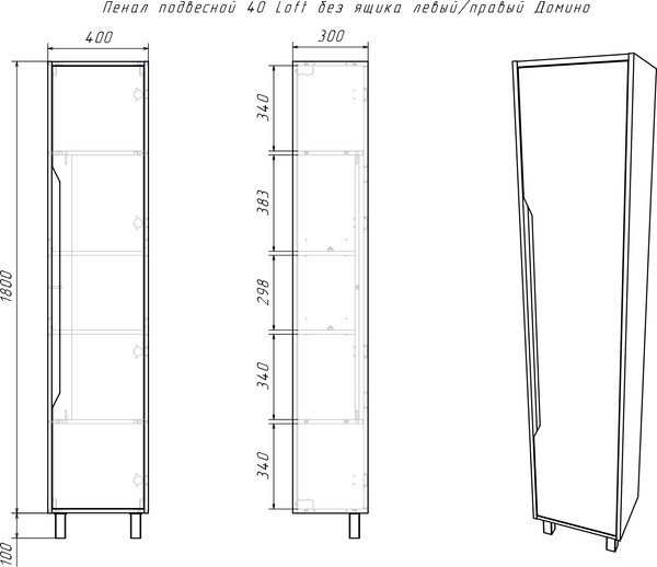 Шкаф-пенал для ванной Домино 40 Loft без ящика DL5605P (бетон)