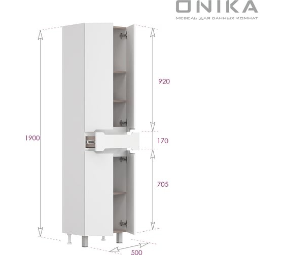 Шкаф-пенал для ванной Onika Айленд 50 / 405003 (белый)