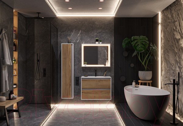 Шкаф-пенал для ванной ЗОВ Парма 150 / PP150LWP0MHMC1A (белый/галифакс)