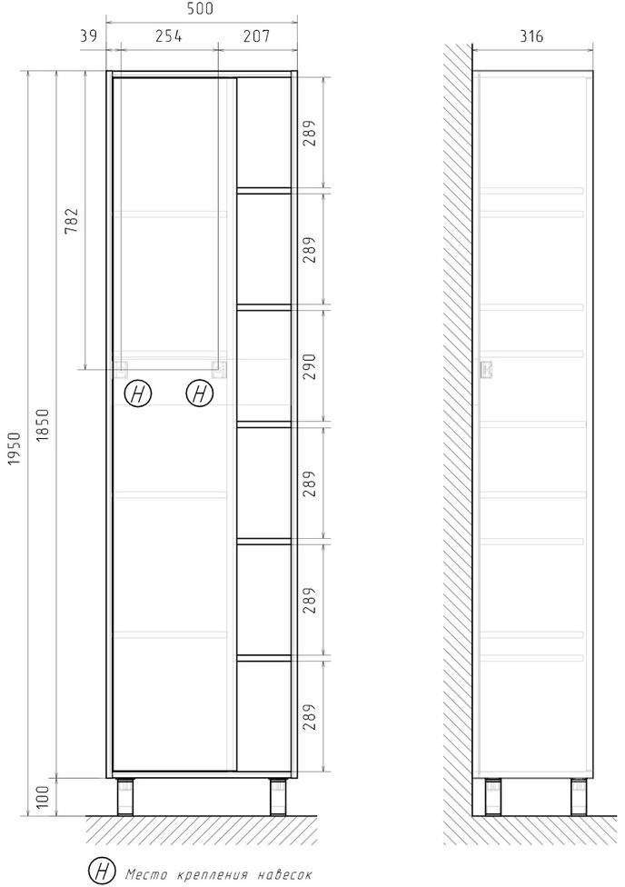 Шкаф-пенал Volna Osmond 50 напольный, светлое дерево, ширина: 50 см, глубина: 31.6 см, высота: 195 см, монтаж: Напольный