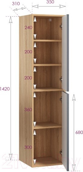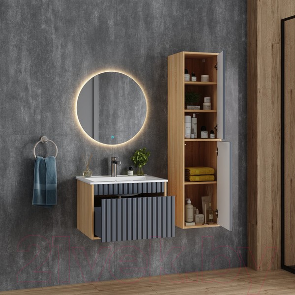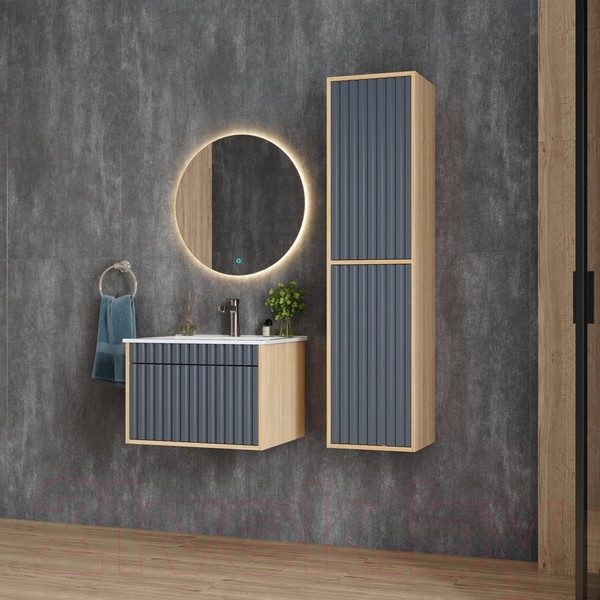 Шкаф-полупенал для ванной Onika Дайлер 35 / 403569 (графит/дуб сонома)