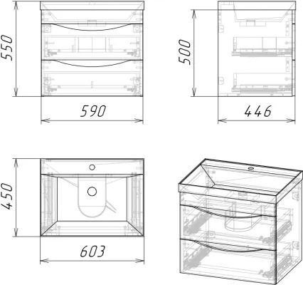 Тумба Axus Найроби 60 под умывальник Слим, бетон - ширина: 60 см, глубина: 44 см, высота: 55 см, монтаж: Подвесной