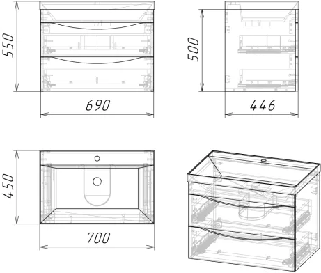 Тумба Axus Найроби 70 под умывальник Слим, бетон - ширина: 70 см, глубина: 44 см, высота: 55 см, монтаж: Подвесной