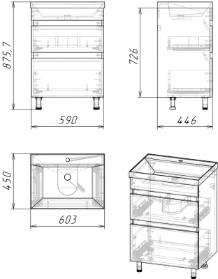 Тумба Axus Ромеро 60 под умывальник Слим, белый - ширина: 60 см, глубина: 44 см, высота: 87 см, монтаж: Напольный