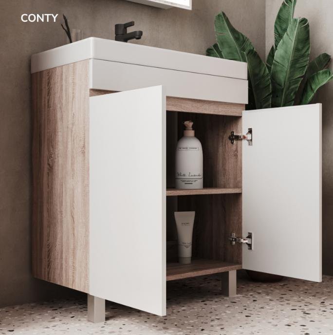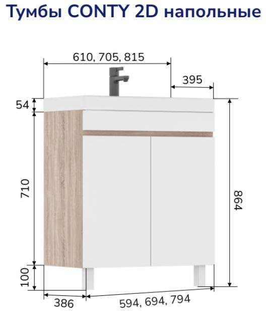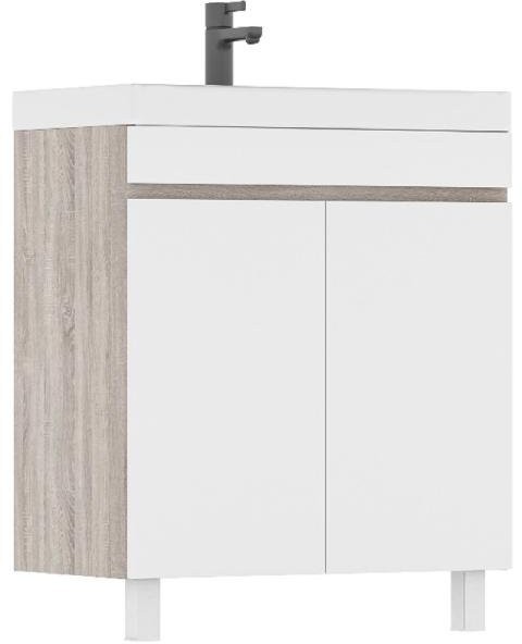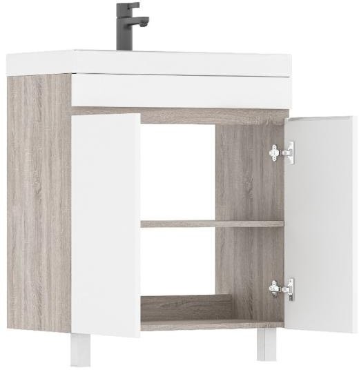 Тумба напольная под умывальник Volna Conty 60.2D белый глянец/дуб сонома