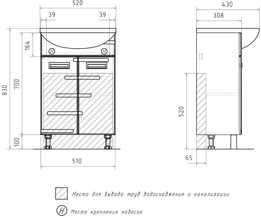 Тумба напольная Volna Joli 55.2D под умывальник Балтика белая - ширина: 51 см, глубина: 30.8 см, высота: 80 см, монтаж: Напольный