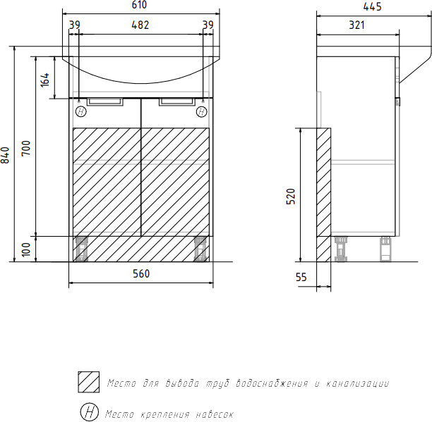 - Размеры (ШхГхВ): 61х44,5х84 см