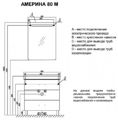 Тумба под умывальник Акватон Америна 80 M - ширина: 76 см, глубина: 44.2 см, высота: 68.8 см, монтаж: Напольный