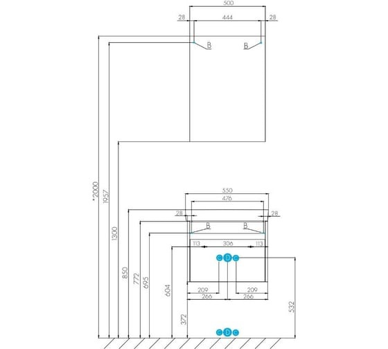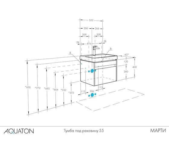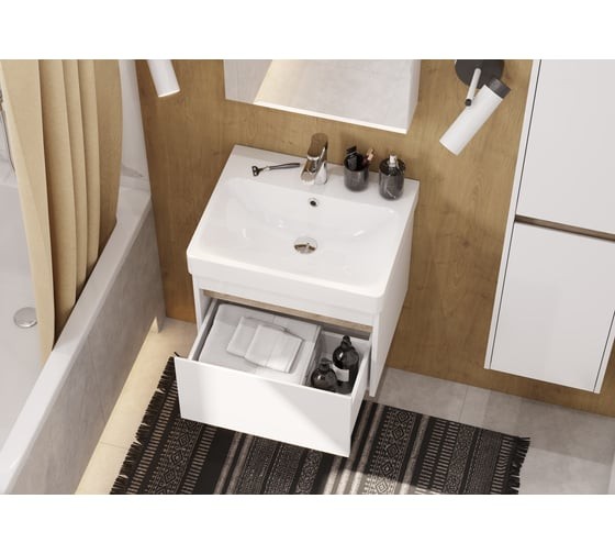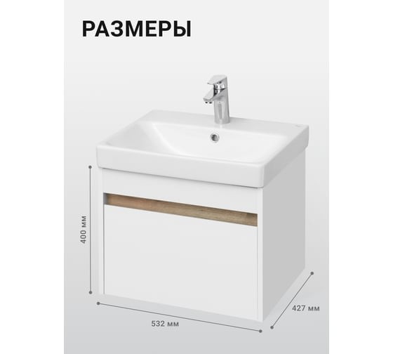 Тумба для ванной под умывальник Акватон Марти 55 (1A263201MY010). Совместимые модели - умывальник (Santek Адриана 55 (1WH501620))