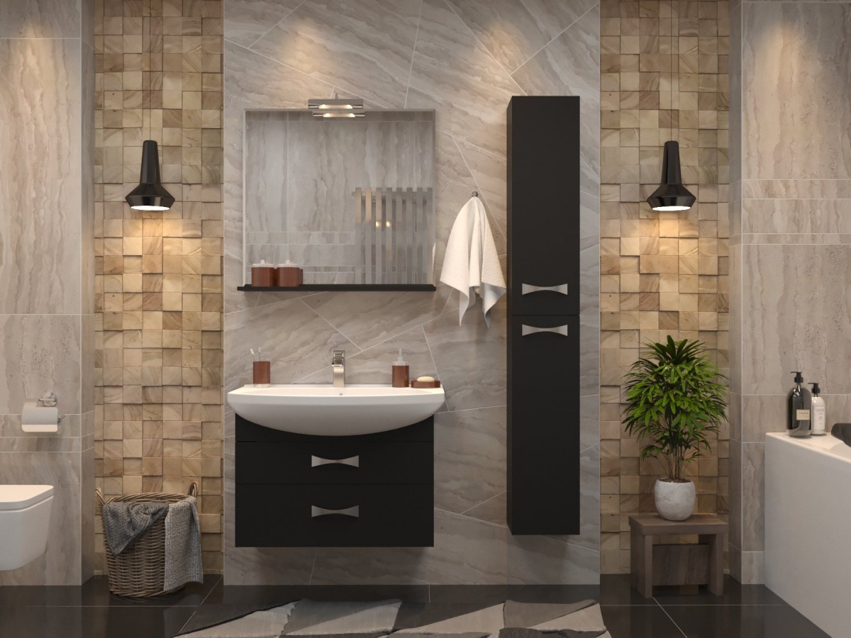 Тумба под умывальник Aquaton Адель 80 черный - ширина: 80 см, глубина: 45 см, высота: 59 см, монтаж: Подвесной