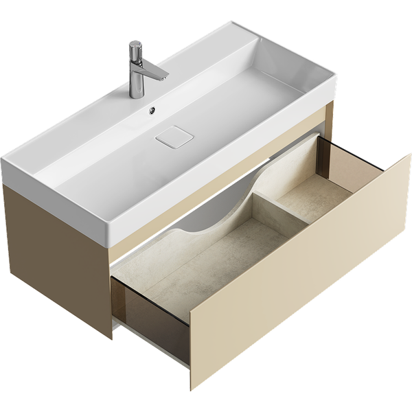 Коллекция мебели для ванной «Geometria» отличается строгими линиями и точностью в каждом элементе. Фасады и боковины с обработкой торцов под углом 45 градусов создают лаконичность и изящный, почти монолитный силуэт в закрытом состоянии. Все грани имеют округлую фрезеровку, обеспечивая приятные тактильные ощущения при открывании.