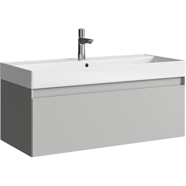 Коллекция мебели для ванной «Geometria» отличается строгими линиями и точностью в каждом элементе. Фасады и боковины с обработкой торцов под углом 45 градусов создают лаконичность и изящный, почти монолитный силуэт в закрытом состоянии. Все грани имеют округлую фрезеровку, обеспечивая приятные тактильные ощущения при открывании.