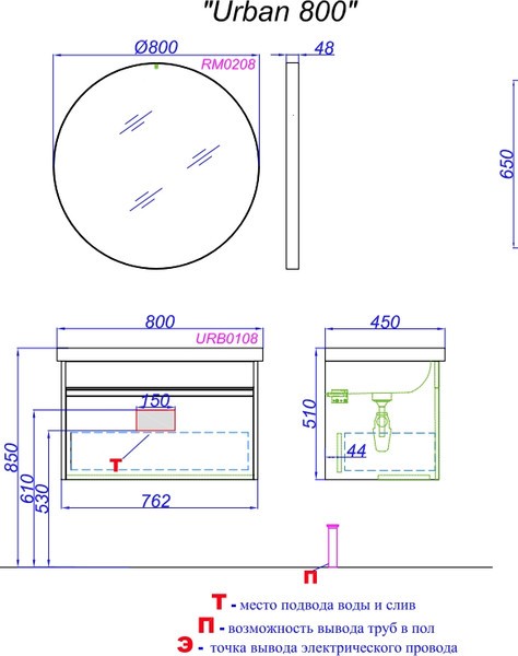 Тумба для ванной под умывальник Aqwella Urban URB0108DB. Совместимые модели - умывальник (Фест 80)