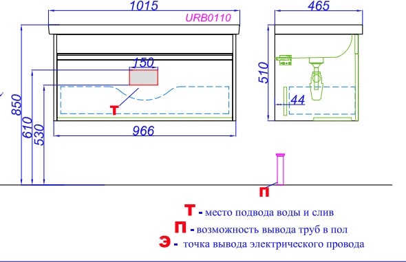 Тумба для ванной под умывальник Aqwella Urban URB0110W. Совместимые модели - умывальник (Фостер 1000)