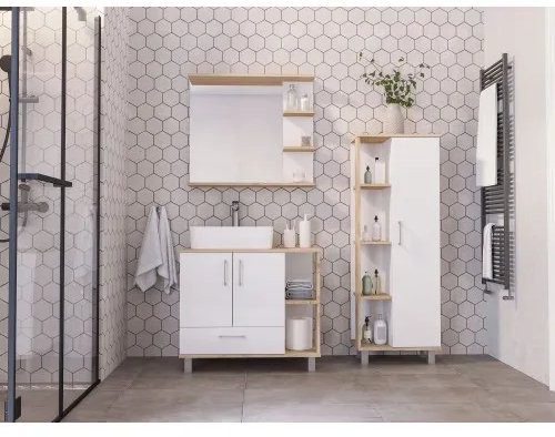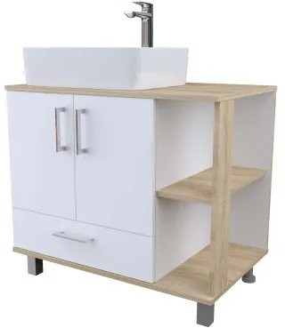 Тумба под умывальник Axus Альпина 80 белый/светлое дерево - ширина: 80 см, глубина: 50 см, высота: 71 см, монтаж: Напольный