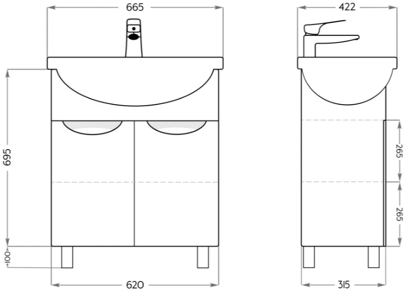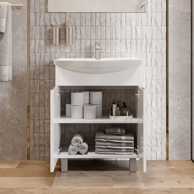 Тумба под умывальник Axus Валенсия tval65 белый - ширина: 62 см, глубина: 31 см, высота: 69 см, монтаж: Напольный