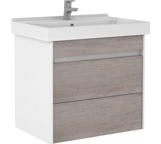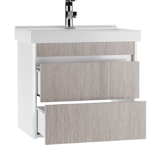 Тумба для ванной под умывальник Домино Fest 60 Uno подвесная с двумя ящиками В2 (дуб серый). Совместимые модели - умывальник (Fest 60 Sanita Luxe)