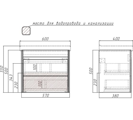 Тумба под умывальник Домино Fest 60 Uno подвесная с двумя ящиками В2 (дуб серый)