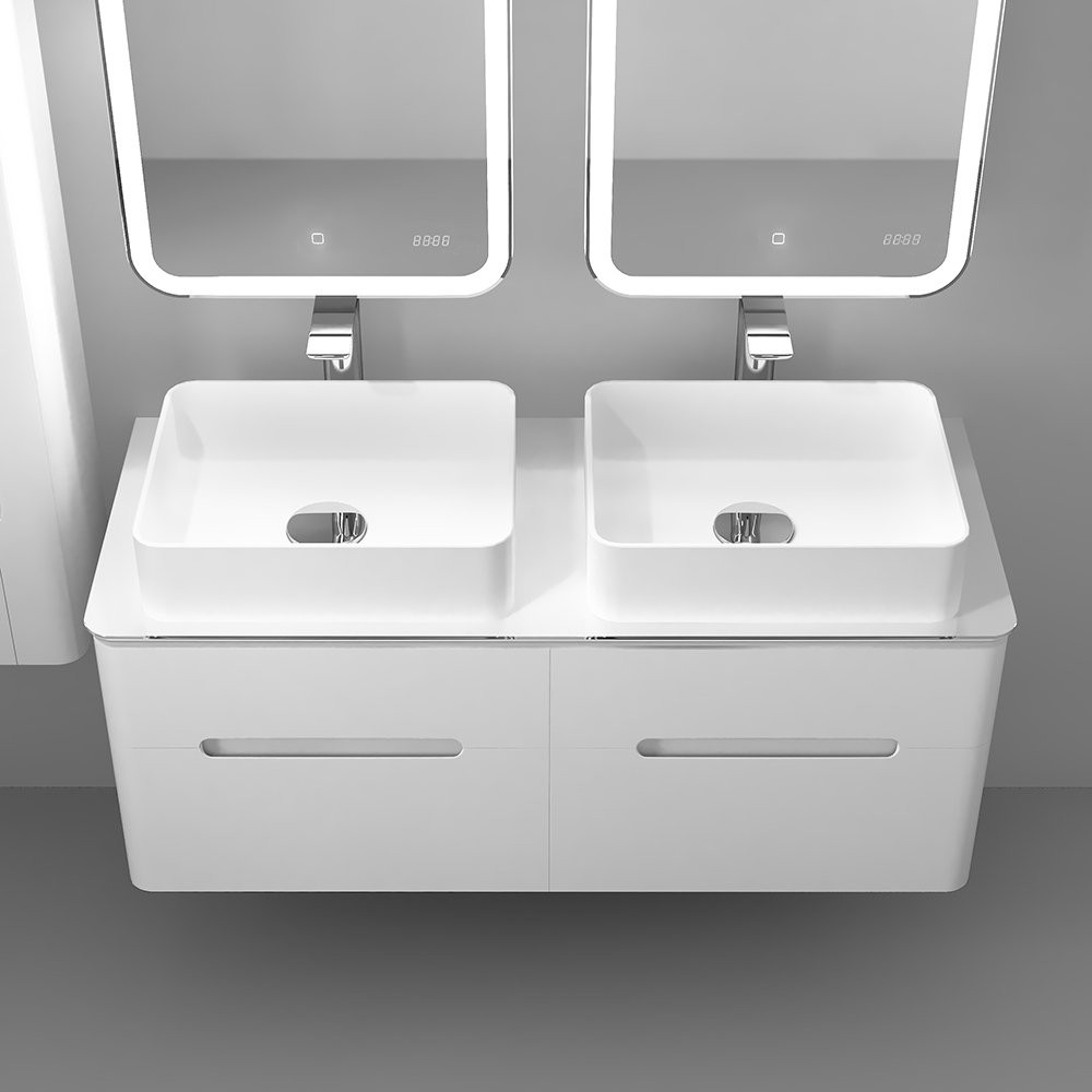 Подвесная тумба Bosko 120 выполнена из МДФ в белой глянцевой пленке ПВХ, а столешница из стекла Lacobel. У тумбы 2 вместительных ящика с удобными интегрированными ручками и механизмом плавного закрывания.