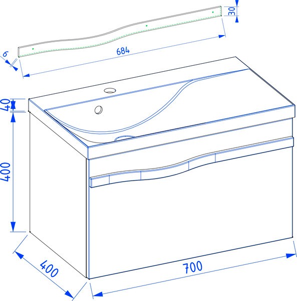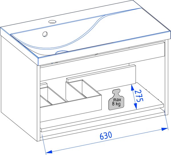 Тумба для ванной под умывальник Lauter Eva 69 (белый глянец, ручка матовая черная сталь). Совместимые модели - умывальник (Lauter Eva)