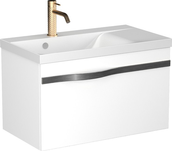 Тумба под умывальник Lauter Eva 69 (белый глянец, ручка матовая черная сталь)