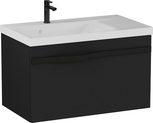 Тумба для ванной под умывальник Lauter Eva 69 (черный матовый, ручка черная матовая сталь). Совместимые модели - умывальник (Lauter Eva)