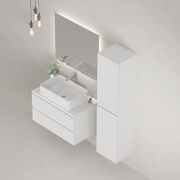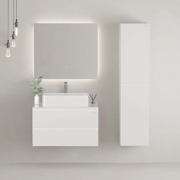 Подвесная тумба Алеста — идеальное решение для создания функционального и современного интерьера вашей ванной комнаты: белоснежный глянец, минимализм и интегрированные ручки.