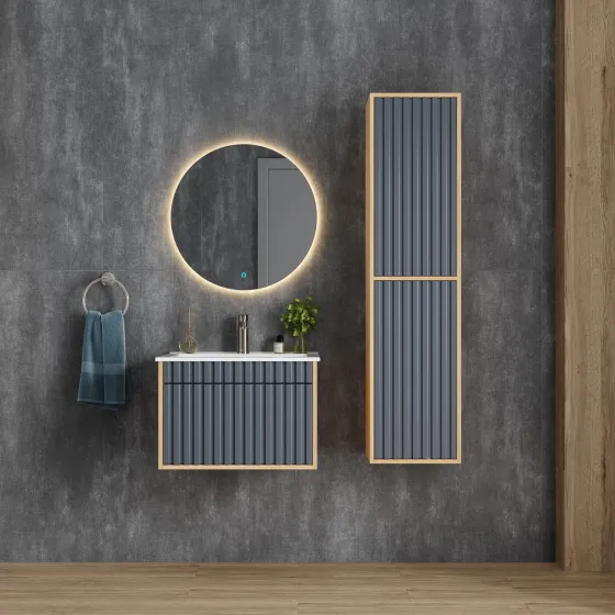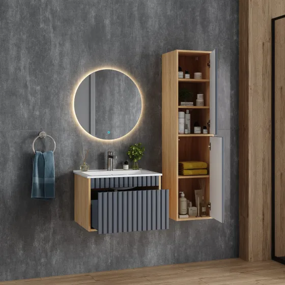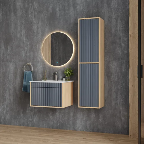 Элегантная подвесная тумба Дайлер представляет собой идеальное дополнение современного интерьера ванной комнаты.Рифленый белый матовый фасад с покрытием SoftTouch и корпус цвета дуба с роскошной текстурой подчеркнет изысканный вкус владельца и станет центральным элементом декора.Вместительный выдвижной ящик на направляющих скрытого монтажа открывается и закрывается легким нажатием благодаря опции Push-to-open.Подвесная конструкция тумбы создает ощущение легкости, не создает неудобств при уборке помещения и визуально расширяет пространство.Корпус тумбы выполнен из ЛДСП, фасад — из ЛМДФ в пленке, устойчивых к механическим воздействиям, перепадам температур и высокой влажности.Подвесы для крепления тумбы — в комплекте.