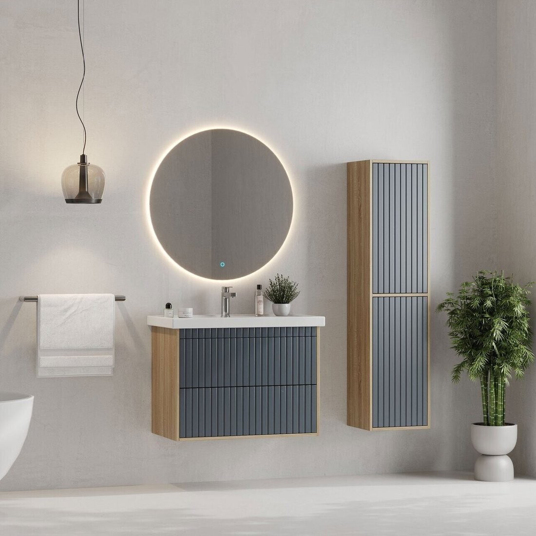 Тумба для ванной под умывальник Onika Дайлер 80 / 108062 (графит/дуб сонома). Совместимые модели - умывальник (Фостер 80)