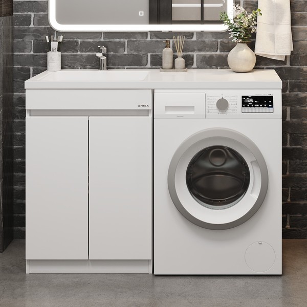 Напольная тумба Милтон Нова 58 станет отличным решением для совмещения со стиральной машиной.