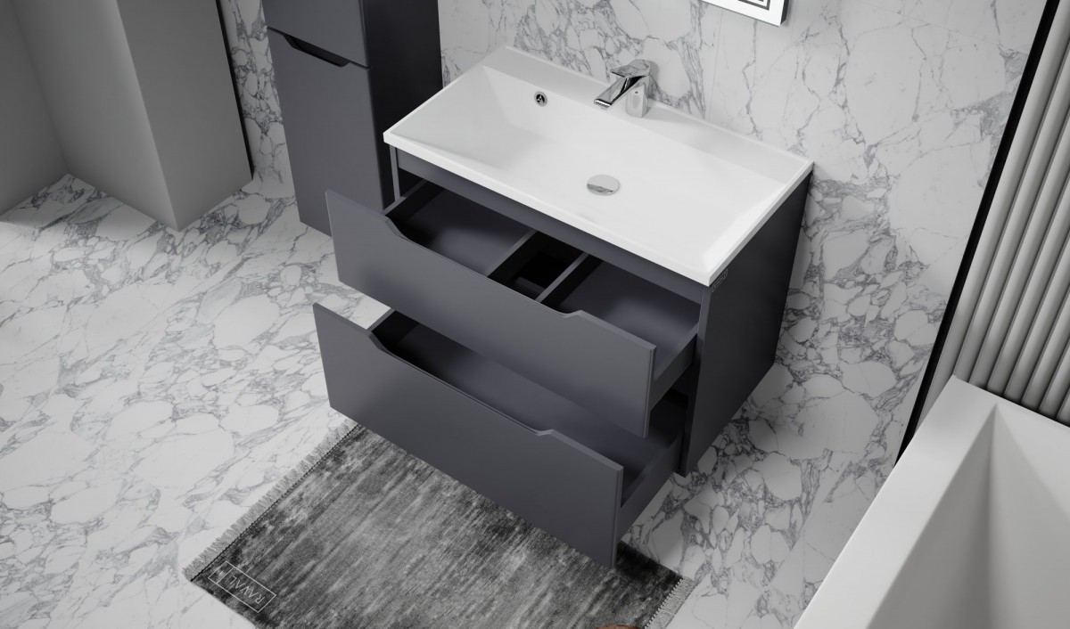 Тумба под умывальник Raval Raval Wector 80x45 с ножками, антрацит - ширина: 80 см, глубина: 45 см, монтаж: Напольный