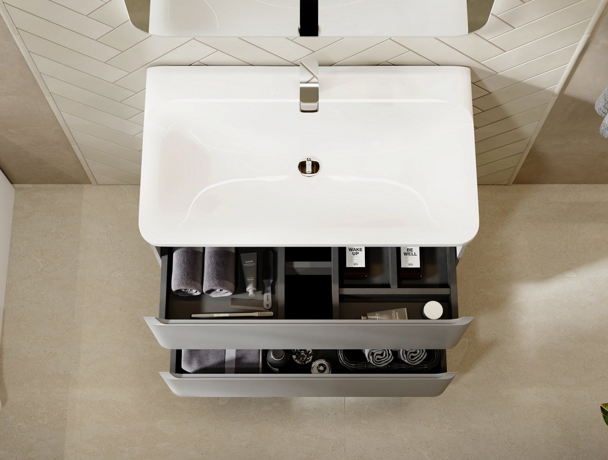 Тумба под умывальник Raval Welto 60 Wel.01.60.2/P/GRS/RL, 2 ящика, светло-серый - ширина: 60 см, глубина: 45 см, высота: 60 см, монтаж: Подвесной