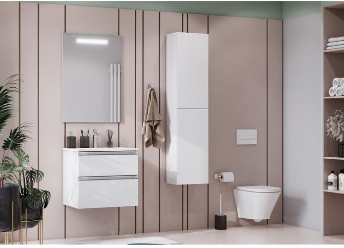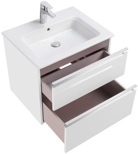 Тумба под умывальник Roca The Gap New подвесная 60 отличается функциональностью и универсальным дизайном. Корпус и фасады изготовлены из влагостойкой ЛДСП с покрытием глянцевой эмалью. Пространство верхнего ящика разделено на три части, предусмотрено пространство под сифон. Внутренняя отделка "бежевый текстиль" препятствует скольжению предметов внутри ящика и приятна на ощупь. Интегрированные ручки во всю ширину тумбы и направляющие Hettich с доводчиками делают процесс эксплуатации максимально приятным. Тумба дополнительно комплектуется двумя вариантами керамических умывальников Roca: Victoria-N и The Gap.