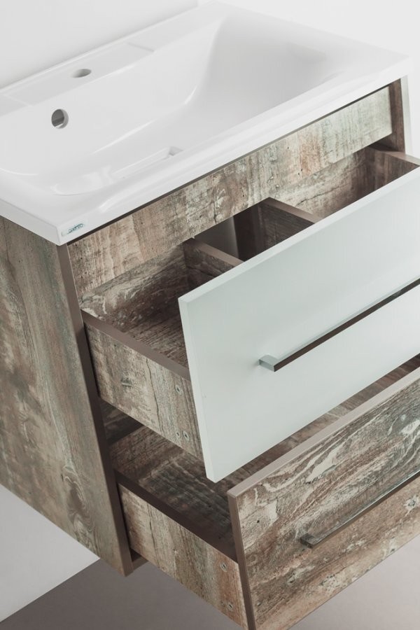 Тумба под раковину Экзотик выполнена в современном стиле модерн, благодаря чему гармонично смотрится во всех актуальных дизайнах ванных комнат.Тумба Экзотик придаст интерьеру особую изюминку при помощи стильного сочетания фактур — белый глянец и серая древесина.Кроме идеального внешнего вида, тумба обладает высоким качеством и функциональностью.Тумбу отличают направляющие полного выдвижения Hettich, которые обеспечивают плавность и бесшумность хода, высокую надежность и прочность.