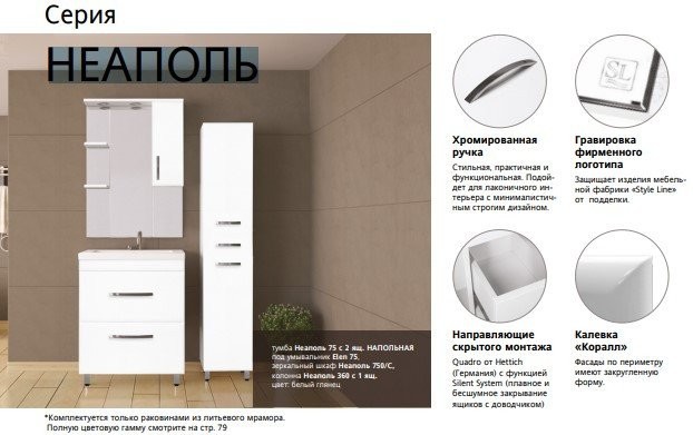Тумба для ванной под умывальник Style Line Неаполь 100 (напольная). Совместимые модели - умывальник (Фостер 100)