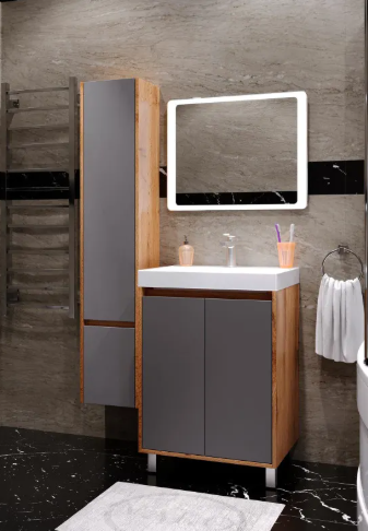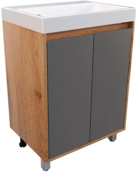 Тумба под умывальник Vako Смарт Слим 60 с полочками, темный пепел - ширина: 59 см, глубина: 45 см, высота: 82 см, монтаж: Напольный