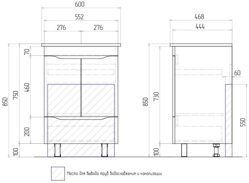 Тумба под умывальник VIGO Grani 600-2-0 tn.GRI.ELI.60.2D белый - ширина: 60 см, глубина: 46 см, высота: 85 см, монтаж: Напольный