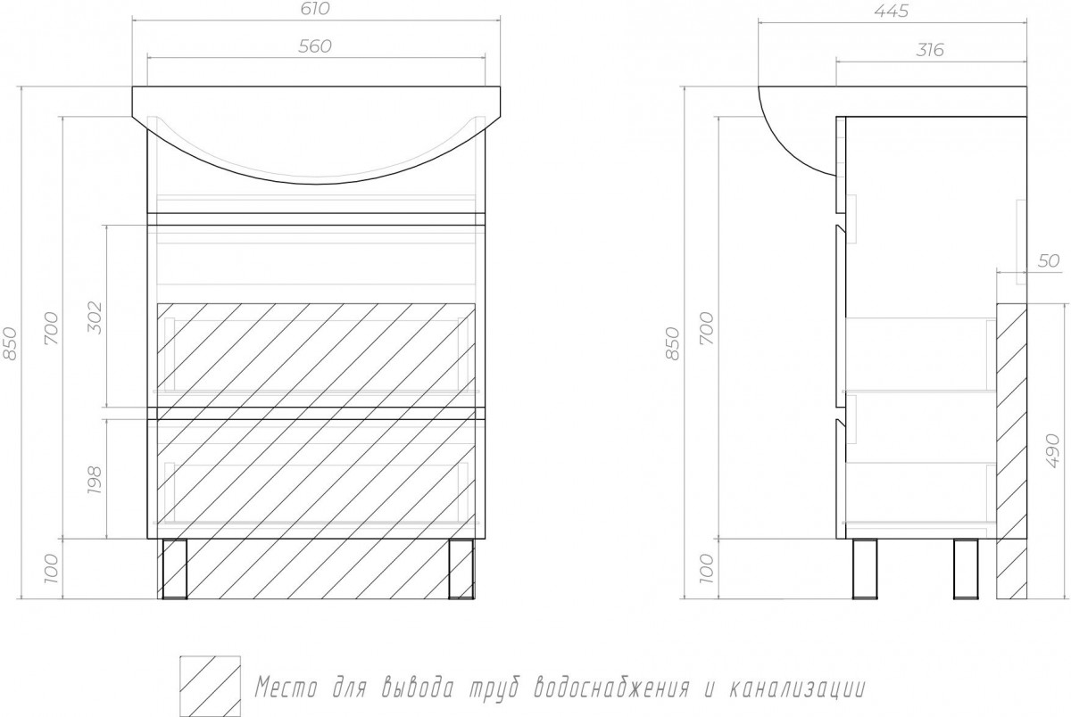 Тумба под умывальник VIGO Wing 600-0-2 tn.WIN.BAL.60.2Y белый - ширина: 56 см, глубина: 31.6 см, высота: 70 см, монтаж: Напольный