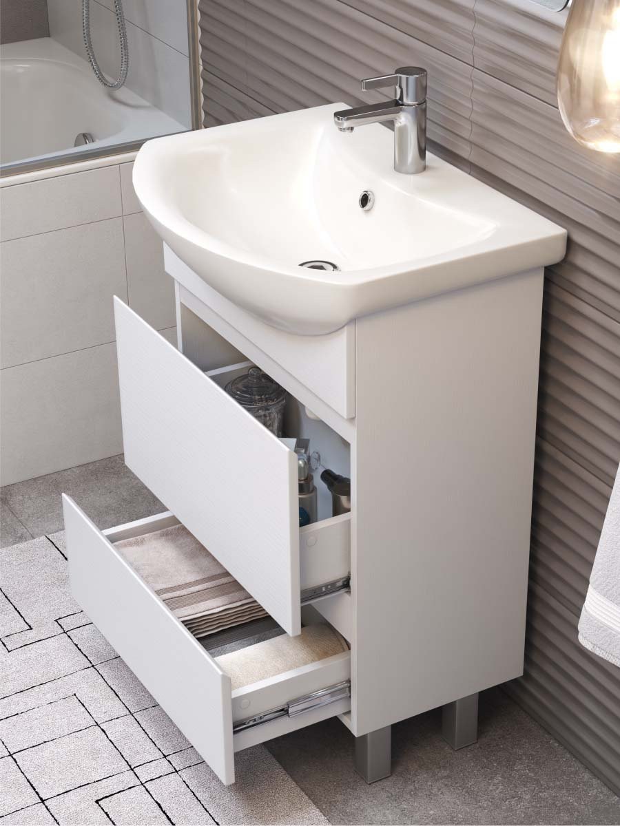 Компактная эргономичная тумба с вместительным выдвижным ящиком под умывальник Балтика.